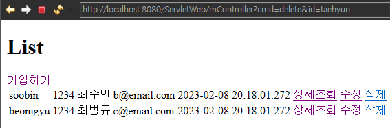 하나의 Servlet에서 여러 작업을 수행하기 - CRUD웹 Web/JSP & Servlet 2023. 2. 8. 20:19