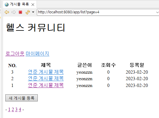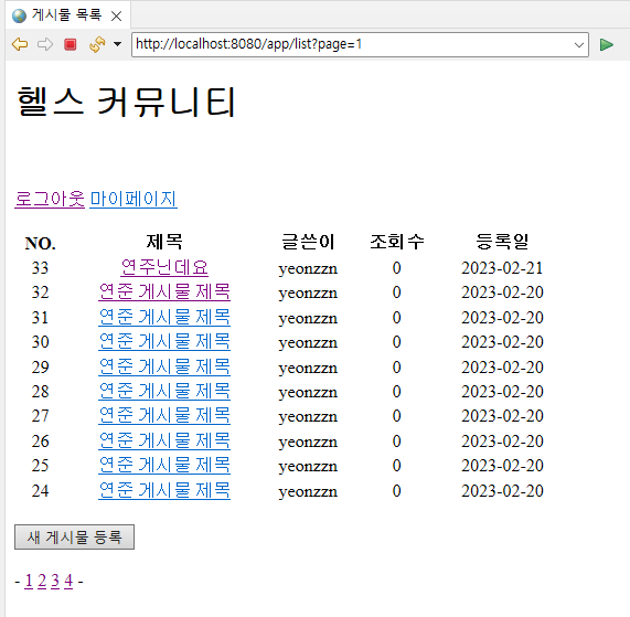 2일차 - 게시물 목록의 페이징 처리프로젝트 일지/Spring 프로젝트- 헬스 커뮤니티 2023. 2. 21. 16:59