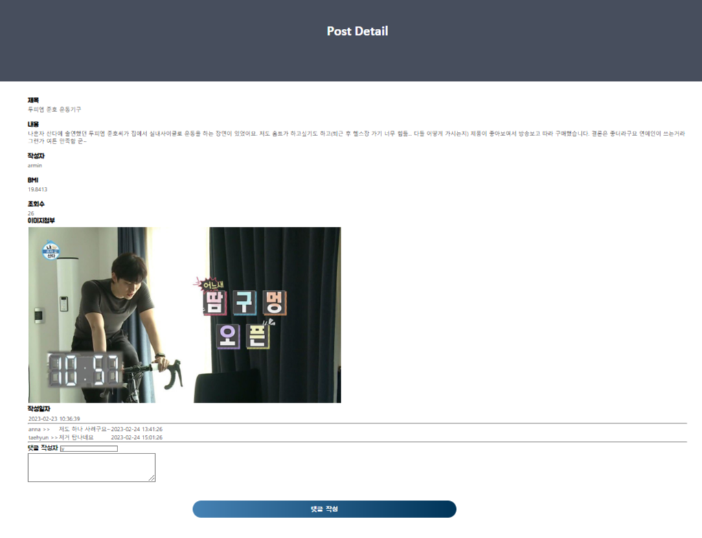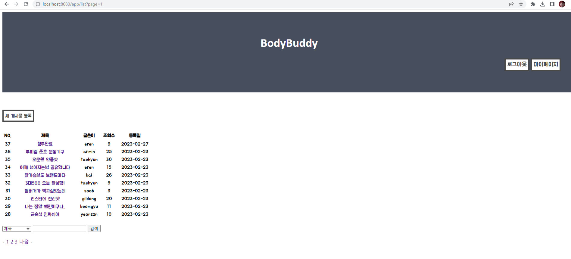 최종 결과물 - <헬스 커뮤니티>프로젝트 일지/Spring 프로젝트- 헬스 커뮤니티 2023. 2. 27. 17:40